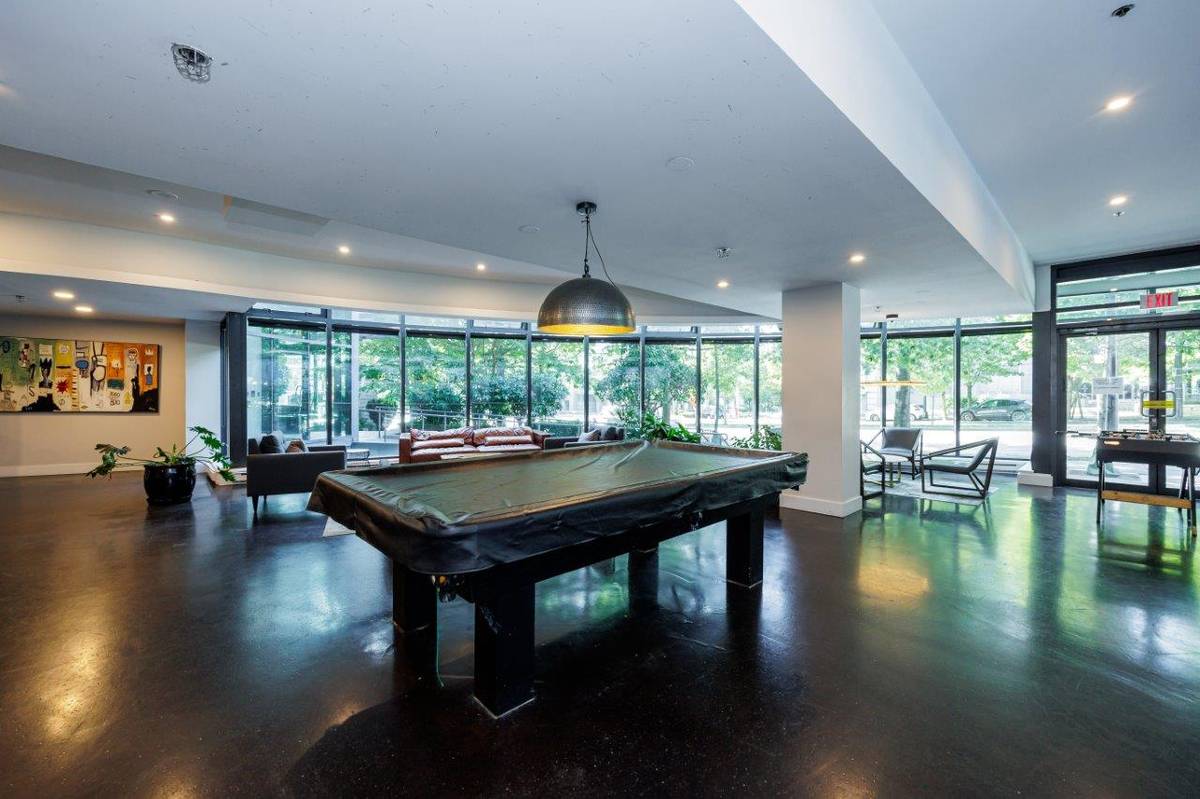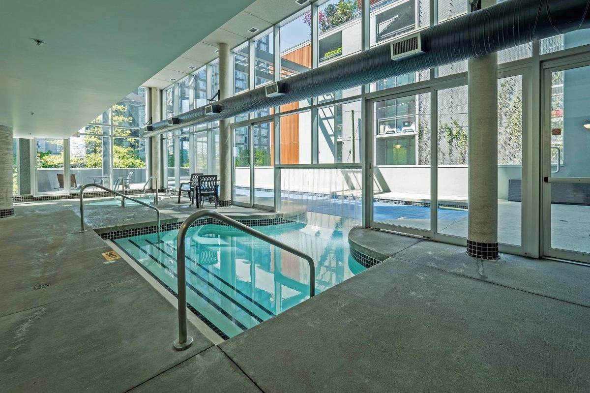 Bright 1 bedroom, 1 bathroom in desirable Yaletown. This well-appointed open concept living apartment features a spacious kitchen with a double door fridge and stainless appliances; it overlooks a green courtyard that makes it feel like a park setting. Floor to ceiling windows offer a bright space for a home office. This property has in suite laundry and includes 1 parking spot. The building has great amenities including a gym, common room with a pool table, humid room with tropical plants and bikes.